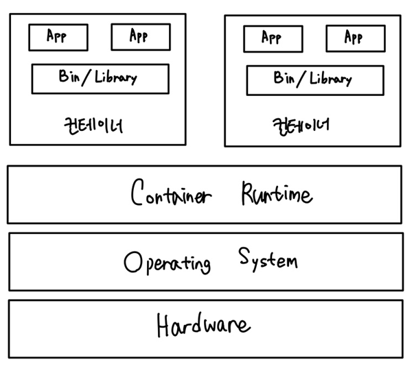 - 운영체제 위에 컨테이너 가상화를 기동하기 위한 컨테이너 런타임 서비스를 준비