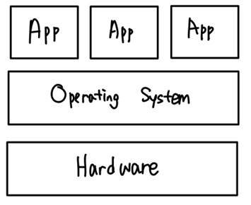 - 하드웨어 위에 운영체제 설치 그 위에 어플리케이션 운영