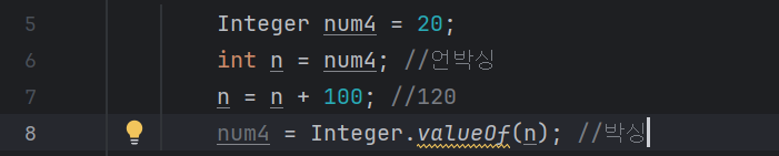 자바5(JDK 1.5)부터 오토박싱과 언박싱 기능이 도입되어 기본 자료형과 래퍼 클래스 간의 변환이 자동으로 이뤄지게 되었습니다.