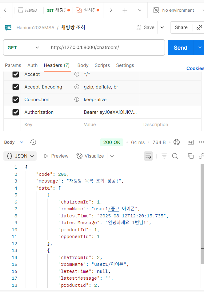 처리 후 다시 포스트맨에서 조회를 해보니,