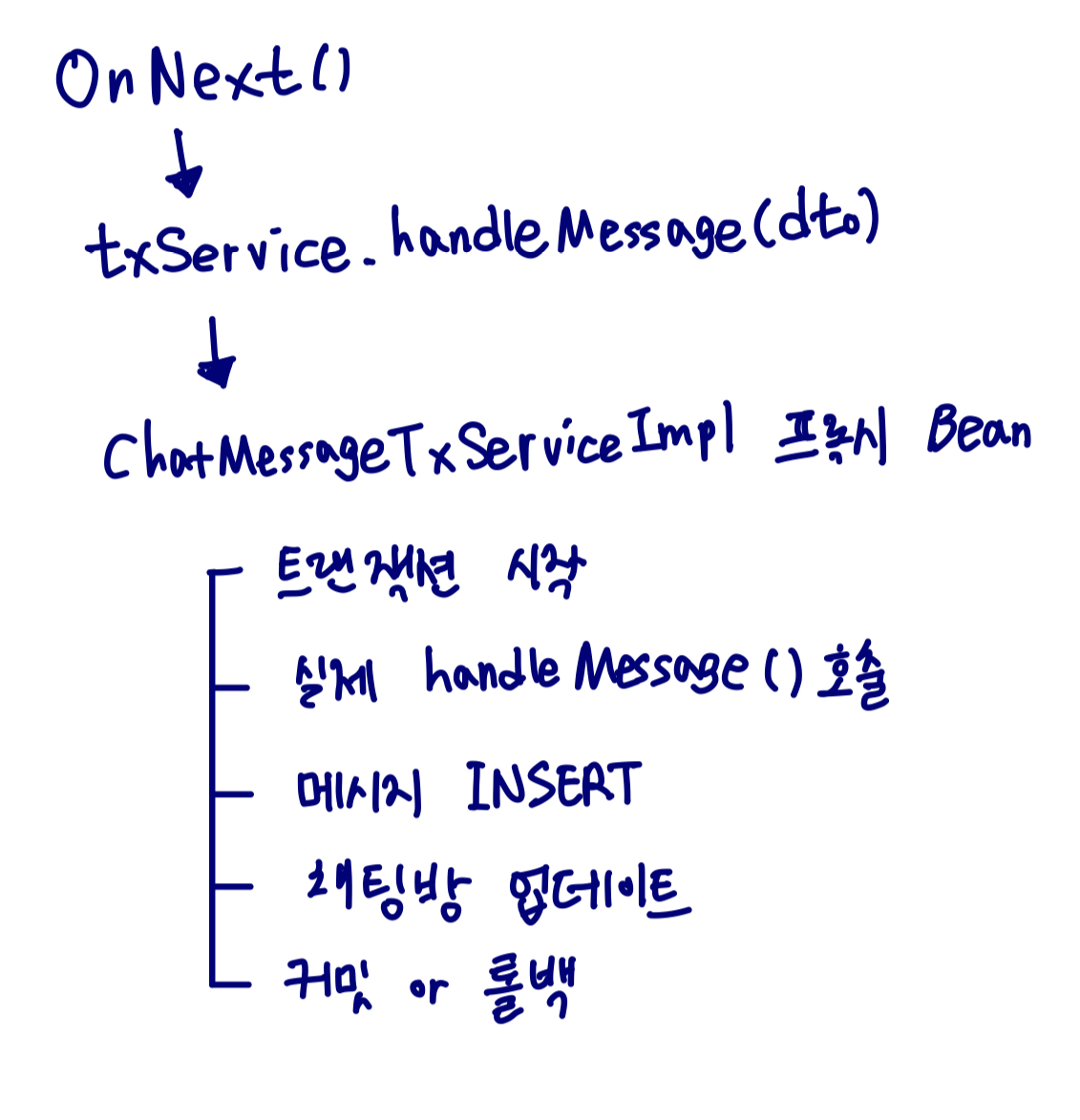 Message saved = txService.handle(dto); // 프록시 경유 → 트랜잭션 보장