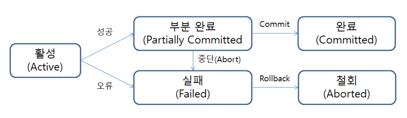 - 트랜잭션이 시작되면, 해당 트랜잭션의 상태는 활동(Active)상태가 됩니다.
